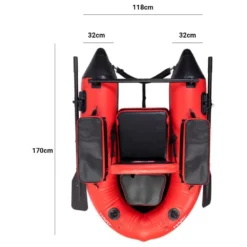 side pockets of 500x230x150 mm and a third one (380x230x240 mm) with a trapezoidal shape that is placed in the bow of the duck.