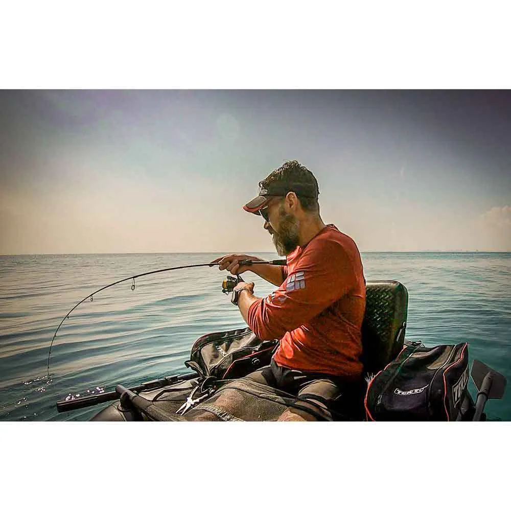 The middle brother of the family is called Teklon® Night Eagle 148 B. It is the ideal duck for the fisherman that seeks the best balance between displacement speed, navigability, load, transport, and storage. Its length of 148 cm and beam of 115 cm make that this is the optimal design configuration both for those who want to start fishing from duck, either from the sea or from fresh water, as for the fisherman experienced in this type of boat and who wants to improve his options in the water. The construction that we have used in this boat combines traditional techniques with the latest technology in PVC fabrics, with which we obtain a unique duck with a rigid, resistant and extremely safe structure.